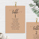 Aidez vos invités à trouver leur table avec cette élégante carte moderne en terre cuite avec des noms d'invités. Cartes recto-verso pour que les clients puissent chercher leur nom à l'avant ou à l'arrière. Libérez de l'espace tout autour en vous donnant la liberté d'utiliser des clips ou un trou de perforation pour accrocher des écrans, ou d'utiliser le support/cadre de table. Arrière - plan en terre cuite et texte noir. Détails de calligraphie manuscrite moderne. Plusieurs options de couleur. Ayez tous les numéros de table dans la même couleur ou mélangez les couleurs selon le thème de couleur de votre événement. Faisant partie de notre collection "Signs et produits d'événements Earth Tones" avec une variété de produits de coordination disponibles, y compris les cartes de numéro de tableau et les menus.