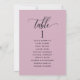 Aidez vos invités à trouver leur table avec cette élégante carte mauve moderne plan de sièges avec des noms d'invités. Cartes recto-verso pour que les clients puissent chercher leur nom à l'avant ou à l'arrière. Libérez de l'espace tout autour en vous donnant la liberté d'utiliser des clips ou un trou de poinçonnage pour accrocher des écrans, ou d'utiliser le support/cadre de table. arrière - plan mauve et texte noir. Détails de calligraphie manuscrite moderne. Plusieurs options de couleur. Ayez tous les numéros de table dans la même couleur ou mélangez les couleurs selon le thème de couleur de votre événement. Une partie de notre collection "Signes et produits d'événements mauves et violets" avec une variété de produits de coordination disponibles, y compris les cartes de numéro de table et les menus.