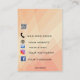 Cette belle carte porte bijoux dispose d'un design arrière - plan géométrique pêche orange et de marques réglables pour les trous d'oreille et les lignes porte-collier. Ci-dessus est le nom d'un message. Au verso, sont des signes modifiables pour un code QR, numéro de téléphone, e-mail, facebook, site web et Instagram. Vous pouvez supprimer toutes les icônes dont vous n'avez pas besoin. Le texte des deux côtés sont modifiables, alors allez-y et changez l'information ainsi que le style de police, la taille et la couleur et faites-le vous-même! Crédit photo : Pawel Czerwinski, 2020. Profitez de vos nouvelles Cartes de Porte-Bijoux de Pêche Orange Editable !