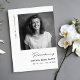 Express votre gratitude et votre reconnaissance avec notre Carte de remerciements de photos commémoratives personnalisées. Ce design moderne et minimaliste est le moyen idéal pour envoyer des remerciements sincères à vos amis et à votre famille pendant cette période difficile. La carte comporte une photo personnalisée, vous permettant de présenter un moment spécial ou la mémoire chère de votre être cher. L'élégante police de script ajoute une touche de sophistication et donne le ton d'un message réfléchi et sincère. La carte est une belle et significative façon d'express vos remerciements pour la gentillesse, l'amour et le soutien que vous avez reçus pendant votre temps de chagrin. En mémoire d'amour de l'être cher disparu, cette carte est un hommage et un souvenir sincères. Montrez votre gratitude avec cette carte de remerciements personnalisée et réfléchie.