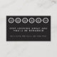 Ce modèle a 5 ciseaux de coiffure dans les icônes crantées de cercles le long du dessus de la carte ainsi vous pouvez perforatrice ou emboutir la carte chaque fois que votre client revient pour une autre coupe.