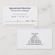 Nos Cartes de rappel pour rendez-vous sont de 3,5 po x 2 po et sont disponibles en huit types de stocks de carte premium. Ces cartes recto verso vous permettent de planifier les rendez-vous et de customiser le dos avec les coordonnées de votre clinique. Nous avons laissé suffisamment de place pour que vous puissiez ajouter votre logo ou télécharger une image clipart de votre choix si vous le souhaitez.