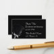 Photo en noir et blanc d'un rose noir avec des cartes de réception en blanc brillant.
