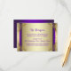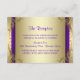 Élégantes cartes de réception violet et or avec de jolies volutes dorées sur fond violet foncé. Cette belle carte de réception violet et or est facilement personnalisable en ajoutant vos détails d'événement, style de police, taille de police et couleur, et texte. Vous pouvez choisir la couleur de l'arrière - violet ou or, en supprimant simplement celui que vous ne voulez pas.