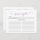 Cartes de recettes de cuisine Fête des mariées contemporaine avec une police de script de typographie de lavande violette stylée sur un arrière - plan blanc immaculé. L'avant de notre carte de recettes offre de la place pour un titre de recette, de la cuisine de et de l'espace ingrédients. Retournez notre carte de recette pour voir les directions, le temps de préparation et le temps total. Visitez notre boutique pour les invitations assorties à la douche nuptiale Disponible dans notre boutique dans un large assortiment de couleurs wedding showers populaires. Insérez parfait nuptiale invitation pour un stock la douche nuptiale cuisine.