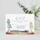 Cartes d'aventure en attente. Cette carte de réponse de style country est conçue avec des arbres verts de style aquarelle et un paysage de style champêtre. La décoration de mariage coordonnée est disponible sur Metro-Event.com et Metro-Events sur Zazzle.