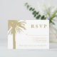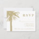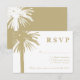 Logo de palmier de sable RSVP cartes de réponse au mariage sur la plage. Donnez à vos invités un moyen de répondre s'ils viennent à votre élégant mariage de plage. Cette conception va de pair avec des invitations de mariage similaires. Qualité du texte et du papier personnalisable. Thème tropical pour le mariage d'été ou de destination. Décor couleur sable beige. Les couleurs de la silhouette peuvent être changées.
