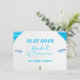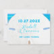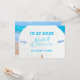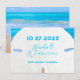 Cartes de réservation de date avec un grand motif de dollar de sable. Une simple annonce de mariage avec trois lignes de texte bleu tropical sur une image réaliste de dollar de sable blanc. L'image de l'océan en arrière-plan est visible à travers les trous du dollar de sable et autour des bords en haut. Le texte correspond aux couleurs de l'eau turquoise et bleue. Personnalisez trois lignes avec la date, les noms et le lieu. La scène de plage complète est imprimée au dos. Un moyen simple, beau et efficace de demander à vos invités de réserver la date de votre mariage.