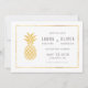 Cartes de sauvegarde Simple Gold Pineapple, partie de notre collection de papeterie de mariage tropicale à motif de pineapple. Avec un motif de pineapple au dos et des accents de feuille d'or faux sur le devant.