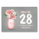 Joli, amusant et simple peint en détresse jarre de mason et rose / fleurs blanches fleurissent cartes de numéro de table, cartes de place. Parfait pour un mariage rustique moderne avec des pièces centrales en bocal de mason peint.