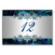 Cartes de table Peacock avec beau bleu royal plumes paon arrière - plan et élégante zone argent et bleu pour le texte ou les numéros de votre choix.
