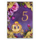 Cartes de table princesse avec chandail princesse or sur un bel arrière - plan violet et or. Vous pouvez customiser ces cartes de table princesse violet et or avec des nombres dans le style de police et la couleur que vous préférez.