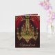 Cartes de vœux bordeaux et or avec un élégant lustre doré sur un magnifique fond de rideau ondulé bordeaux et or. Vous pouvez déplacer ou supprimer le lustre et les volutes à l'intérieur de la carte selon vos besoins. Vous pouvez ajouter le texte de votre choix à l'avant et à l'intérieur dans le style de police que vous préférez.