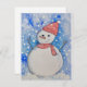 Carte de vœux avec un bonhomme de neige à l'aquarelle et à l'encre. Au dos il est écrit "C'est la saison d'être gelé."