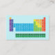 Carte de visite avec tableau périodique des éléments, avec chaque groupe d'éléments marqué en couleurs arc-en-ciel.