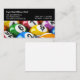 Ce modèle de carte de visite à thème de billard a une image de closeup graphique colorée de billard et de texte que vous pouvez customiser en ligne pour votre salon de billard, salle de billard ou bar de sport.