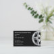 modèle en ligne pour carte de visite automobile conçu avec une jante de roue de voiture dans le arrière - plan et un agencement simple pour un service automobile, mécanicien ou magasin de pneus.