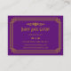 Ces cartes de visite présentent une palette de couleurs violet et or, un cadre géométrique et d'autres détails stylistiques inspirés de l'Art Déco et des années folles. Vous pouvez saisir votre nom, votre titre de travail, vos numéros de téléphone, votre adresse de messagerie et votre site Web dans les champs de texte de l'exemple.