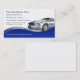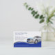 Cartes de visite automobiles avec élément de design bleu cool, image d'une voiture rapide, et couleur arrière - plan blanc que vous pouvez changer si vous voulez. Conçu pour un atelier de carrosserie qui répare les épaves de voitures, la réparation automobile générale, ou un mécanicien automobile.