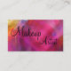 Cartes de visite de maquilleur avec la belle et unique conception dans une conception bilatérale qui inclut un arrière - plan abstrait d'aquarelle, arrière - plan noir que vous pouvez changer si vous voulez à, et disposition des textes vous pouvez customiser et personnaliser. Les meilleurs cartes de visite pour un maquilleur, un représentant de cosmétiques, ou un cosmetologist.