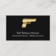 Carte de visite d'autodéfense que vous pouvez customiser avec la conception bilatérale puissante qui inclut inclut un pistolet simulé d'or avec la disposition des textes vous pouvez personnaliser. Conçu pour une école de sécurité ou d'autodéfense d'arme à feu de main, ou l'armurerie.