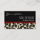 Cartes de visite de beauté avec le motif à la mode de style de léopard et la disposition moderne des textes que vous pouvez personnaliser pendant que vous souhaitez et couleur d'arrière - plan vous pouvez customiser. Distribuez vos cartes de visite de salon dans le style qui rend elle mémorable et l'amusement. Conçu pour un salon pour des ongles, des cheveux, la beauté, ou un spa de jour.