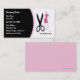 Cartes de visite de coiffeur avec l'image de cisailles stylisées et une coiffeuse élégante sur le devant ainsi qu'une belle disposition de texte que vous pouvez customiser. Meilleur carte de visite pour toute personne impliquée comme coiffeur, esthétique, consultant beauté, ou salon.