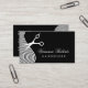 Cartes de visite de coiffeur | modèle professionnel. Elégante carte d'entreprise pour salon de beauté ou coiffeur indépendant / coiffeur. Design élégant avec cheveux ondulés et logo ciseaux. Créez vos propres cartes élégantes pour des salons spas/esthéticiennes chic. Couleurs noires et blanches classiques. Personnalisable . Aussi pratique comme rappel de rendez-vous.