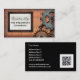 Cartes de visite faits sur commande de style de Steampunk avec des détails de dents en métal et d'arrière - plan et de nom de rivets dans un cadre de tableau fleuri. Ajoutez votre propre texte et code de QR (ou supprimez sinon nécessaire). Customisez pour plus d'options (couleurs de polices, positions, texte supplémentaire)