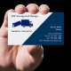 Déplacer le modèle de carte de visite de service dans un design simple et moderne qui comprend une image d'un camion en mouvement et d'un homme en mouvement avec une couleur bleue arrière - plan que vous pouvez changer. Conçu comme un carte de visite pour un service de déménagement résidentiel ou commercial.