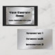 Une texture extérieure brillante de sembler en métal en aluminium de chrome de regard d'acier inoxydable sur un arrière - plan noir de fibre de carbone est un carte de visite promotionnel semblant audacieux, unique et masculin. La frontière des vis s'ajoutent à la conception 3d. Facilement personnaliser avec votre propre information. Employez le style de police parfait du lettrage de noir audacieux avec des vis dans la conception, ou changez facilement le style de police et/ou le colorez. La carte de regard professionnelle parfaite particulièrement pour des professions industrielles, de construction et de construction. Plus d'information peut être aussi bien mise sur le dos sur le même arrière - plan de regard en métal. Imprimé sur le papier, métal non réel. Un carte de visite fort qui se tient du repos.