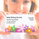 Modèle simple coloré de carte de visite babysitter dans un design de fleurs audacieux et coloré et modèles de texte vous pouvez facilement personnaliser en ligne. Conçu pour un professionnel de la garderie, un service de garde d'enfants ou une gardienne indépendante.