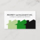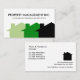 Modèle de carte de visite de gestion immobilière dans un design moderne et tendance à deux côtés qui met en évidence votre nom d'entreprise sur le devant avec des symboles de maison dans les tons verts. Conçu pour les services de gestion immobilière pour les propriétés résidentielles ou commerciales.