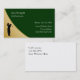 Cartes de visite de golf que vous pouvez personnaliser avec la conception puissante qui inclut un or simulé métallique comme l'élément de conception imprimé sur l'avant et un joueur de golf balançant un club de golf. Customisez facilement la couleur des textes, la taille, la police, et la couleur d'arrière - plan. Les meilleurs cartes de visite pour un professionnel de golf, un instructeur de golf, des leçons ou des approvisionnements.