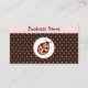Les coccinelles roses et brunes décorent ces mignons cartes de visite. Customisez la carte pour répondre à vos besoins. Utilisez ces cartes de visite pour une boutique, une boutique, une garderie, une garderie, une école maternelle, une boulangerie, des vêtements, etc...Le design est de l'art original.