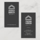Une forme abstraite et simplifiée qui rappelle une maison crée une identité moderne pour votre entreprise ou votre marque personnelle sur ce modèle de carte de visite classique. Placez-vous sur un arrière - plan noir à texture subtile pour une profondeur supplémentaire. Une identité parfaite pour les architectes, les architectes d'intérieur, les constructeurs de maisons, les entrepreneurs et plus encore. Art et design originaux © 1201AM Design Studio | www.1201am.com