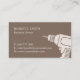 Un carte de visite moderne en brun foncé et blanc crème qui convient le mieux à ceux qui travaillent la menuiserie, le bois et les services de réparation connexes. Il comporte une icône arrondie carré d'une perceuse électrique dans le carré. Personnalisez facilement avec vos détails professionnels.