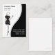 Les cartes de visite de mode avec la dame chic de mode portant une damassé s'habillent et la disposition des textes que vous pouvez customiser sur un arrière - plan blanc et noir rose. Carte de visite élégant qui est distinctif et frais. Les meilleurs cartes de visite pour des thèmes liés à la boutique de mode, à la modélisation, à la beauté, ou emploient ceci pour un salon de cheveux ou d'ongle.