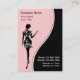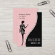 Les cartes de visite de mode avec la dame chic de mode portant une damassé s'habillent et la disposition des textes que vous pouvez customiser sur un arrière - plan blanc et noir rose. Carte de visite élégant qui est distinctif et frais. Les meilleurs cartes de visite pour des thèmes liés à la boutique de mode, à la modélisation, à la beauté, ou emploient ceci pour un salon de cheveux ou d'ongle.