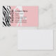 Façonnez les cartes de visite avec la conception à la mode qui inclut un motif animal de rayures noires et blanches de zèbre, la grande disposition des textes que vous pouvez personnaliser, et la couleur d'arrière - plan vous pouvez customiser pour adapter à votre goût avec l'image d'une dame de mode comme contexte. Conçu comme carte de visite pour une boutique, un mannequin ou un concepteur d'habillement.