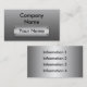 Un carte de visite fort d'argent de surface métallique. La plaque d'acier métallique de chrome sur l'avant de la carte et lissent le métal balayé sur le dos. Également ajoutée à cette carte est une plaque signalétique en métal 3d avec quatre boulons sur chaque coin à ajouter à la profondeur de la carte. Perfectionnez pour votre nom de la société ou votre nom. Personnalisez avec votre propre texte facilement sur l'avant et sur le dos. La carte de regard professionnelle parfaite particulièrement pour des professions industrielles, de construction et de construction. Une force industrielle audacieuse, carte de visite professionnel.