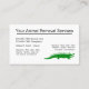 Modèle de carte de visite pour l'enlèvement d'animaux et d'animaux sauvages pour un service de lutte antiparasitaire dans un design unique incluant un alligator avec les mots "Animal Removal" dans un graphique intelligent. Conçu pour un professionnel de la lutte antiparasitaire, de l’extermination ou de l’enlèvement de la faune.