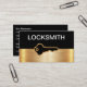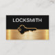Cartes de visite classiques pour un service Locksmith ou Sécurité conçu avec élément de conception de tonalité or brossé et graphique clé de sécurité dans ce modèle personnalisé vous pouvez personnaliser en ligne.