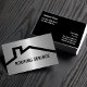 Cartes de visite de toiture simple avec un toit de maison, avec le texte vous pouvez facilement customiser en ligne et cool arrière - plan métallique à l'avant. Un design simple mais puissant avec beaucoup de place pour un logo si vous voulez ajouter le vôtre. Conçu pour une société de toitures, un couvreur ou un entrepreneur de remodelage.