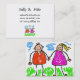 Dessin de craie enfantin étalé d'un couple heureux tenant des mains. Un carte de visite personnalisé pour des couples.