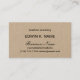 Carte de visite professionnel simple avec texte clair et texte sur kraft : résumé du poste, nom, nom de l'entreprise et coordonnées.