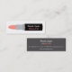 Un carte de visite moderne et contemporain qui a une conception d'un rouge à lèvres avec l'espace sur le bâton pour la personnalisation des détails. La couleur du rouge à lèvres est à une nuance orange couleur pêche légère. Cette conception de carte de visite mince et lisse est grande pour des maquilleurs, des stylistes et ceux dans les entreprises de beauté. Personnalisez facilement avec vos détails d'affaires.