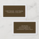 Ces cartes de visite ont été faits avec l'université et les étudiants universitaires à l'esprit. Le réseau avec les employeurs potentiels, contacts d'avenir et produisent des avances du travail avec ces cartes de visite professionnels. Ils comportent un arrière - plan brun avec le texte blanc pour votre nom, le domaine d'études et l'université. Le dos contient la pièce pour toute votre information de contact.