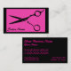 Cartes de visite noirs roses de ciseaux de salon de coiffure
