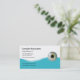 Cartes de visite optométristes modernes avec l'image d'un oeil, élément de design bleu attrayant, et texte que vous pouvez personnaliser selon votre pratique médicale. Conçu pour un optométriste, un ophtalmologiste ou un magasin d'usure des yeux.